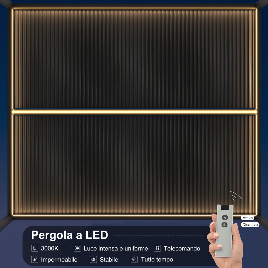 Importante: I fascioni LED sono adatti esclusivamente ad alcuni modelli di questa pagina. Resi e rimborsi non sono accettati se li acquisti per altre pergole non compatibili. Se non sei sicuro che il fascione sia adatto al tuo modello, ti preghiamo di consultarci prima dell'acquisto.