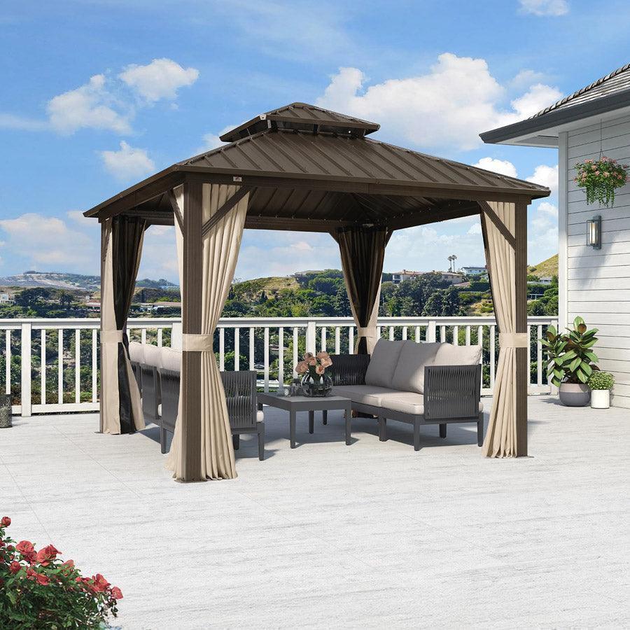 PURPLE LEAF Gazebo da Giardino In Alluminio Impermeabile e Stabile Doppio Tetto in Acciaio Galvanizzato Versione Economica - Bronzo