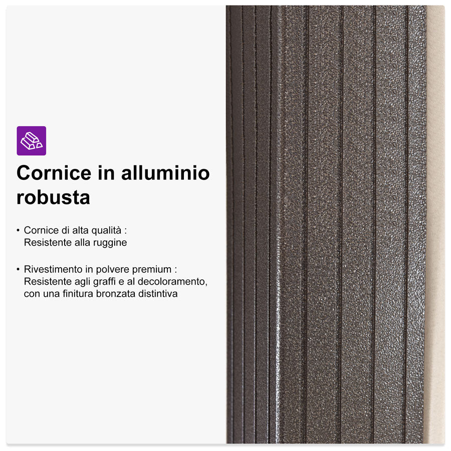 【Telaio Robusto in Lega di Alluminio】Il telaio in alluminio di alta qualità, dotato di fori preforati per un'installazione stabile, offre un'eccellente resistenza anche in caso di vento forte.