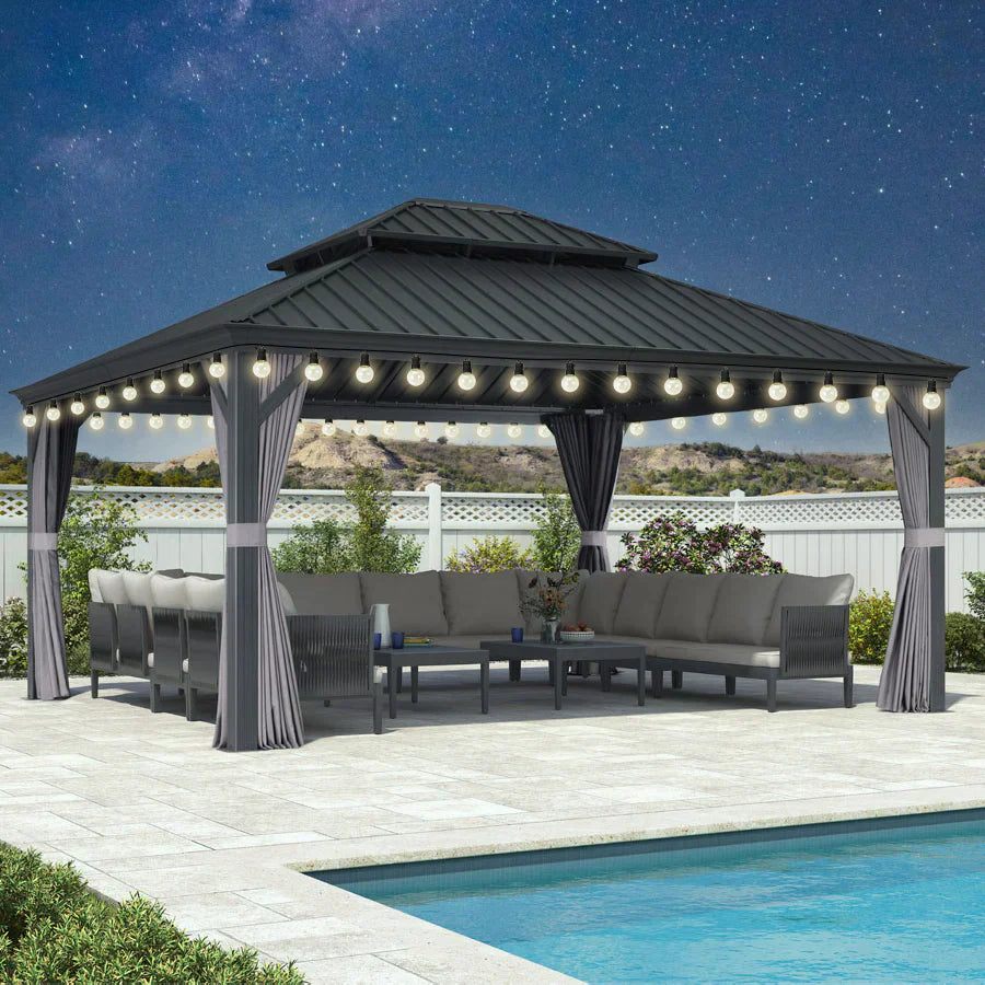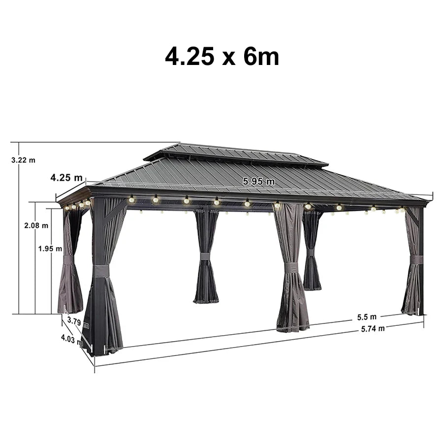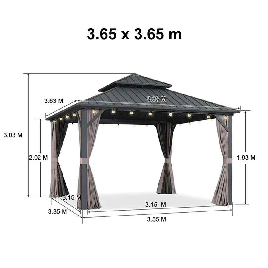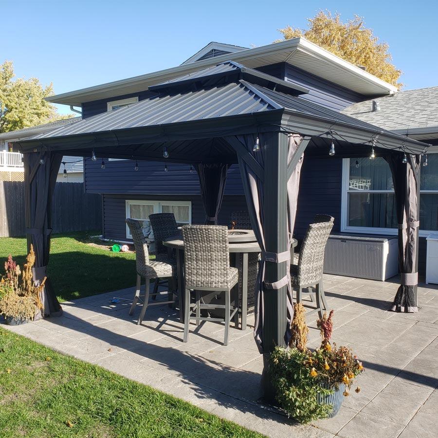 Si tratta di un gazebo da patio esterno elegante e robusto. Presenta un design semplice che offre un'ampia ombra e una protezione efficace contro la luce intensa, i raggi del sole e il calore eccessivo. Il gazebo con tetto rigido PURPLE LEAF ti permette di goderti il tuo giardino, che piova o tiri vento. Diventerà un'aggiunta permanente al tuo spazio esterno, ideale per intrattenere gli ospiti o semplicemente per rilassarsi da soli o in famiglia.