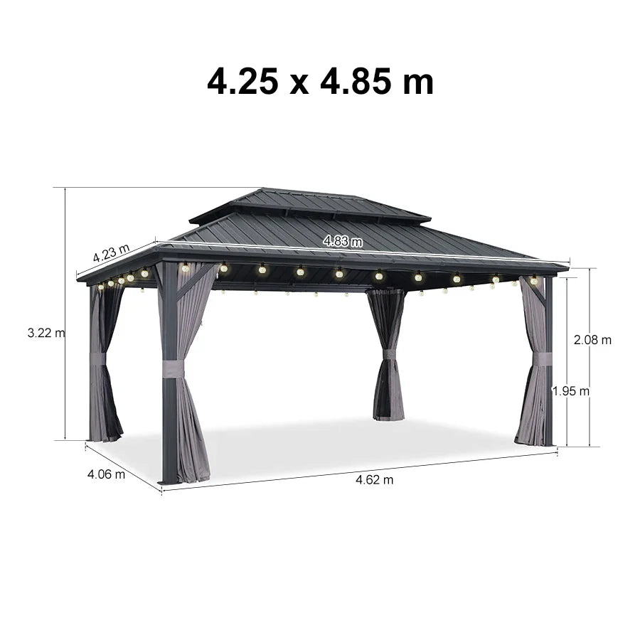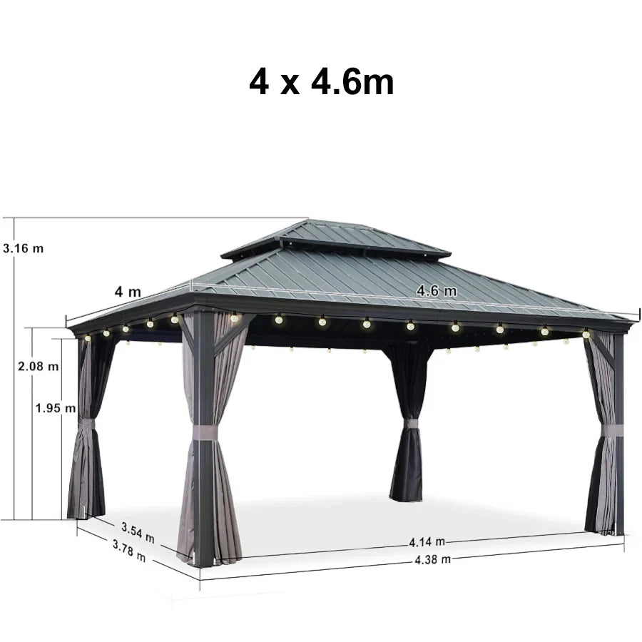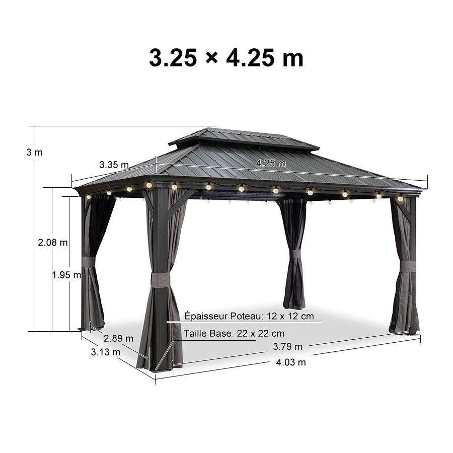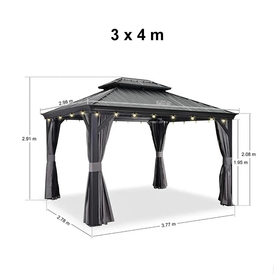 PURPLE LEAF Gazebo da Giardino Esterno, Padiglione da Giardino a Doppio Tetto in Acciaio Zincato Solido, con Luci Trasparenti, Modello Lusso - Grigio