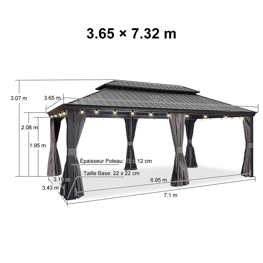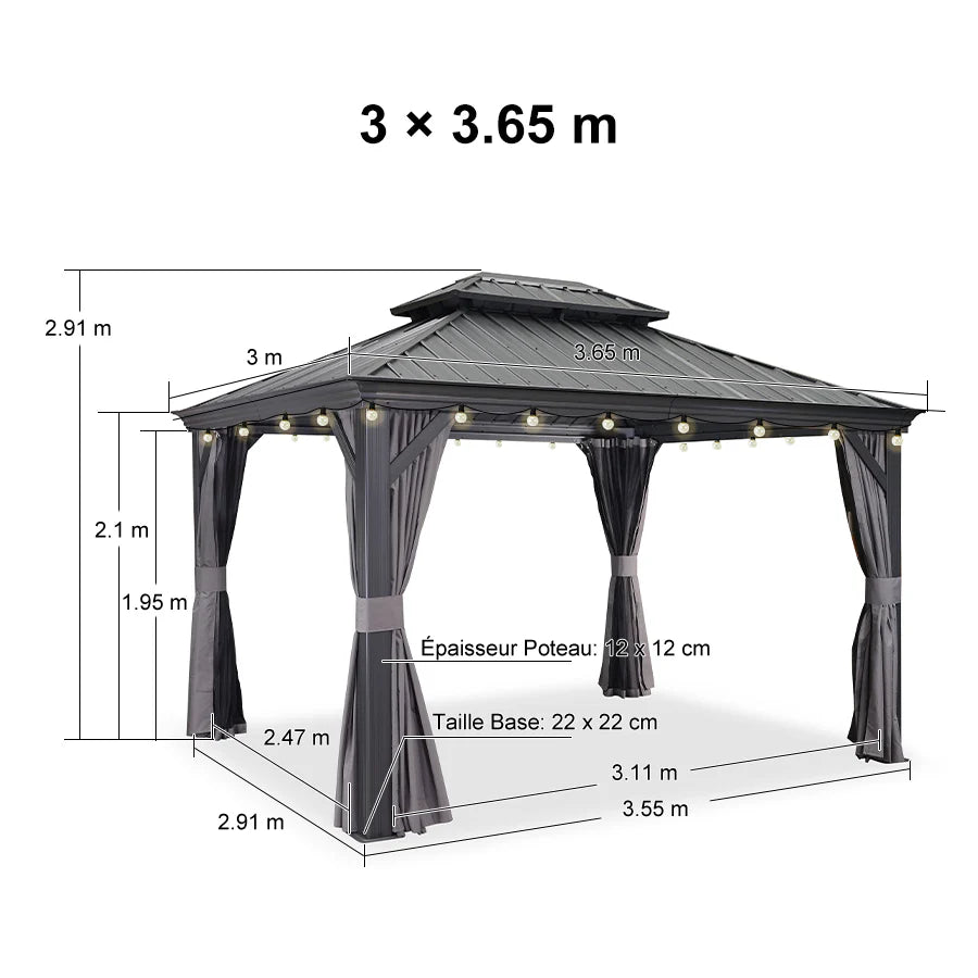 【Nota Importante】Dopo l'installazione, assicuratevi di ancorare bene il vostro gazebo. Prima di qualsiasi acquisto, vi consigliamo di consultare i regolamenti del vostro comune e i requisiti di zonizzazione locali, poiché potrebbe essere necessaria un'autorizzazione.