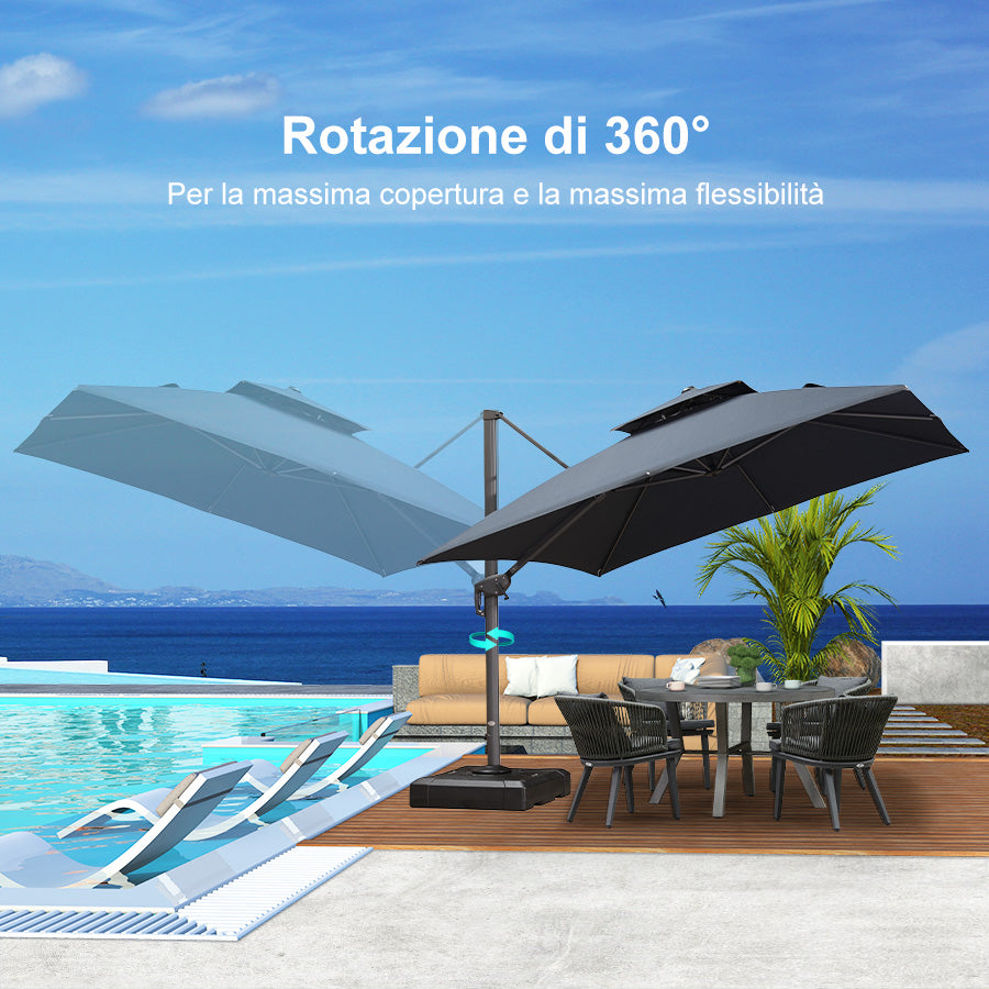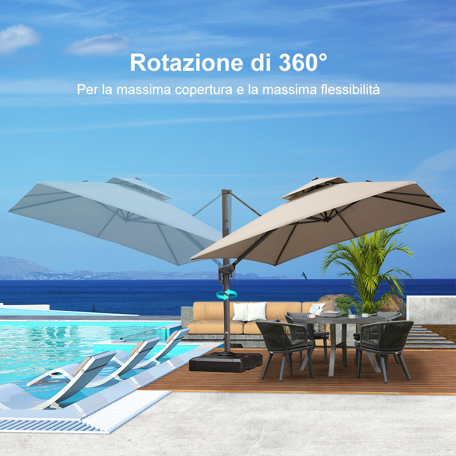 💜 Rotazione di 360°: Questo ombrellone quadrato da esterno è caratterizzato da un esclusivo design del manico e da un meccanismo a manovella, che offre 6 altezze e angoli di inclinazione tra cui scegliere. Il design esclusivo e migliorato consente all'ombrellone di ruotare di 360 gradi e di fornire ombra in qualsiasi momento, garantendovi un servizio di ombreggiamento attento e un'esperienza meravigliosa.