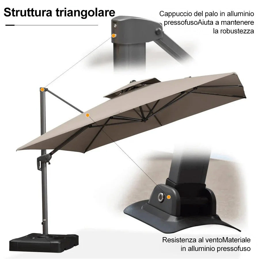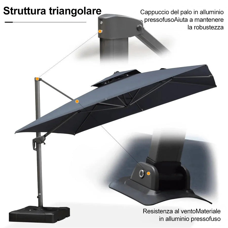 Scoprite la perfetta fusione di stile e funzionalità con l'ombrellone a manovella economico PURPLE LEAF, progettato per trasformare qualsiasi spazio esterno in un rifugio soleggiato. Il nostro ombrellone elegantemente realizzato offre una protezione solare superiore e un design a braccio con manovella che elimina il palo centrale, garantendo una vista chiara e molto spazio per sedersi senza ostacoli.
