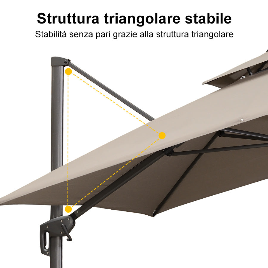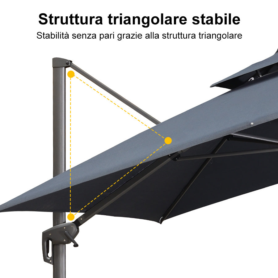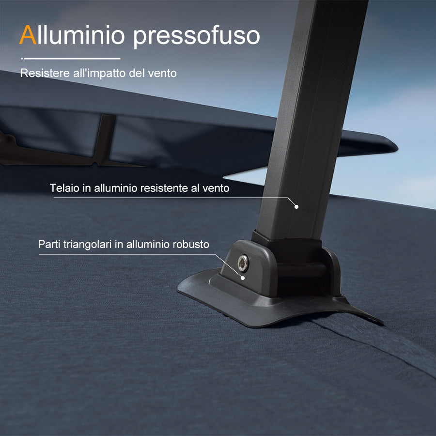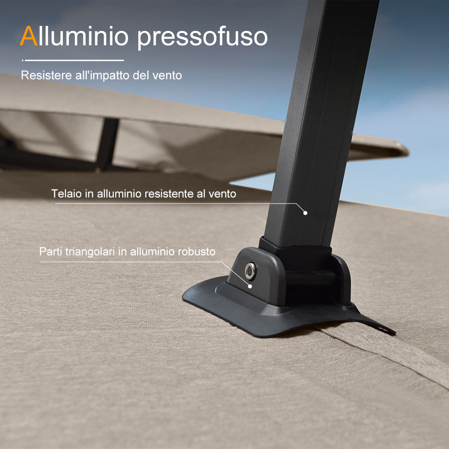 💜 Struttura robusta: I montanti, realizzati interamente in alluminio con rivestimento antiossidante a spruzzo e otto robuste stecche, garantiscono sufficiente stabilità e garantiscono un'elevata resistenza alle intemperie di questo ombrellone a sbalzo.