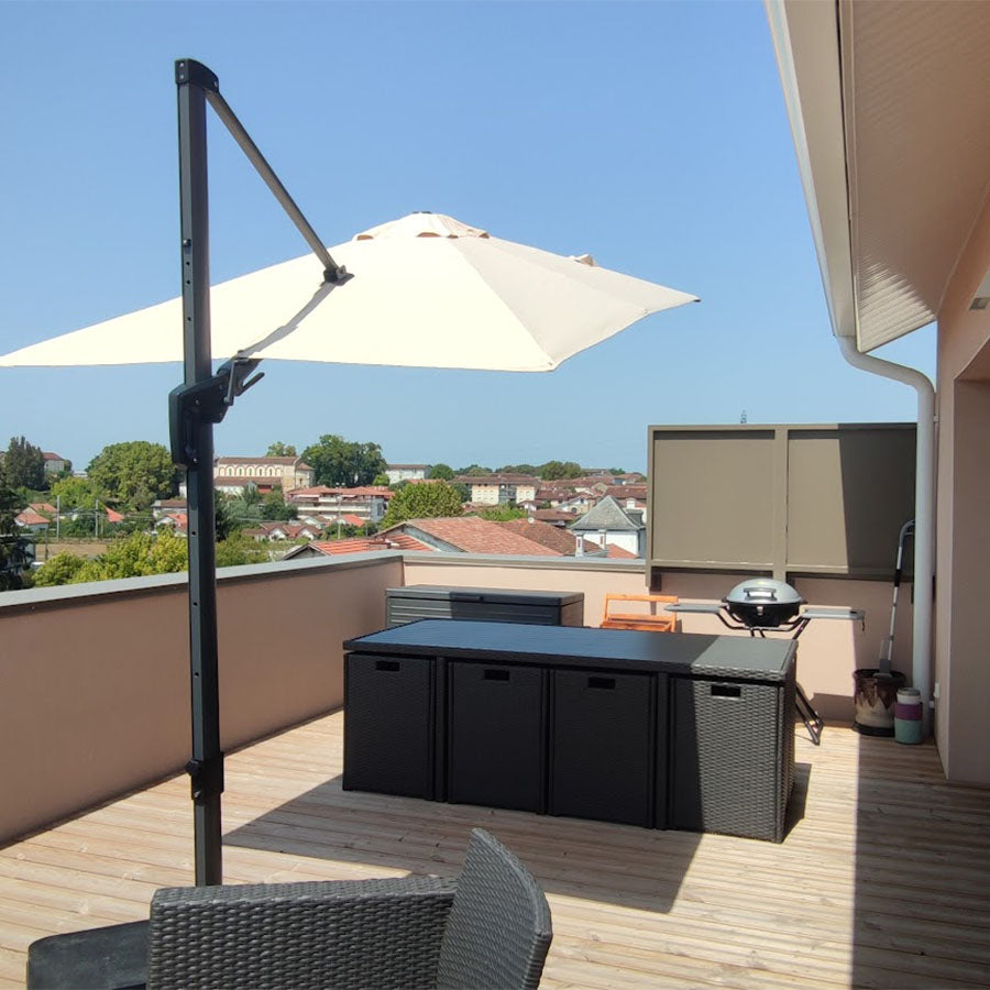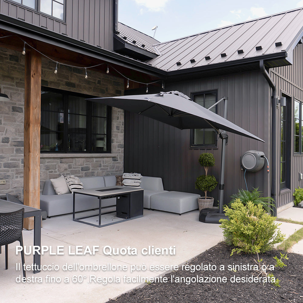 Scoprite la perfetta fusione di stile e funzionalità con l'ombrellone a manovella economico PURPLE LEAF, progettato per trasformare qualsiasi spazio esterno in un rifugio soleggiato. Il nostro ombrellone elegantemente realizzato offre una protezione solare superiore e un design a braccio con manovella che elimina il palo centrale, garantendo una vista chiara e molto spazio per sedersi senza ostacoli.