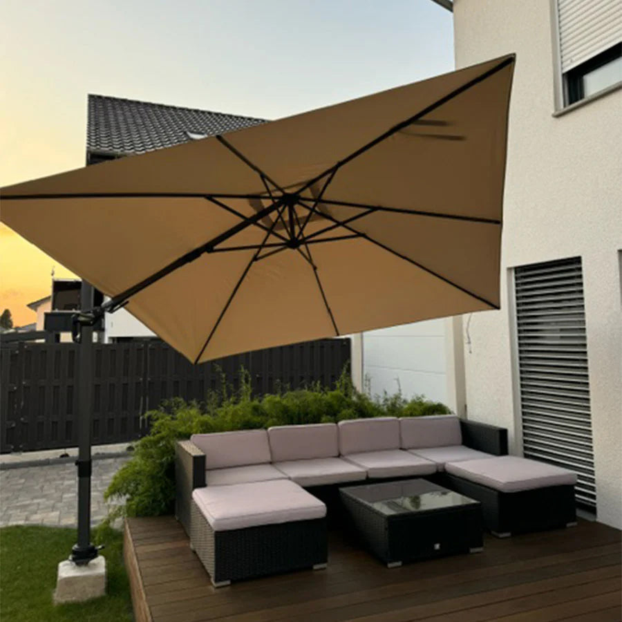 💜 Lussuoso e facile da montare: il nostro ombrellone a sbalzo viene fornito con istruzioni di installazione ben progettate e tutti gli strumenti necessari per un facile montaggio. Il design del baldacchino quadrato migliora l'aspetto del vostro giardino e può essere installato da una sola persona.