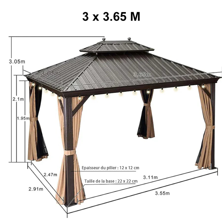 PURPLE LEAF Tonnelle da Giardino, Tetto Doppio in Acciaio Galvanizzato, con Tende Migliorate e Guirlande Luminose Trasparenti, Bronzo